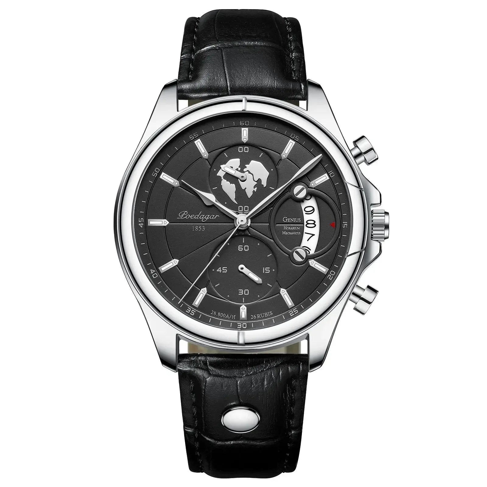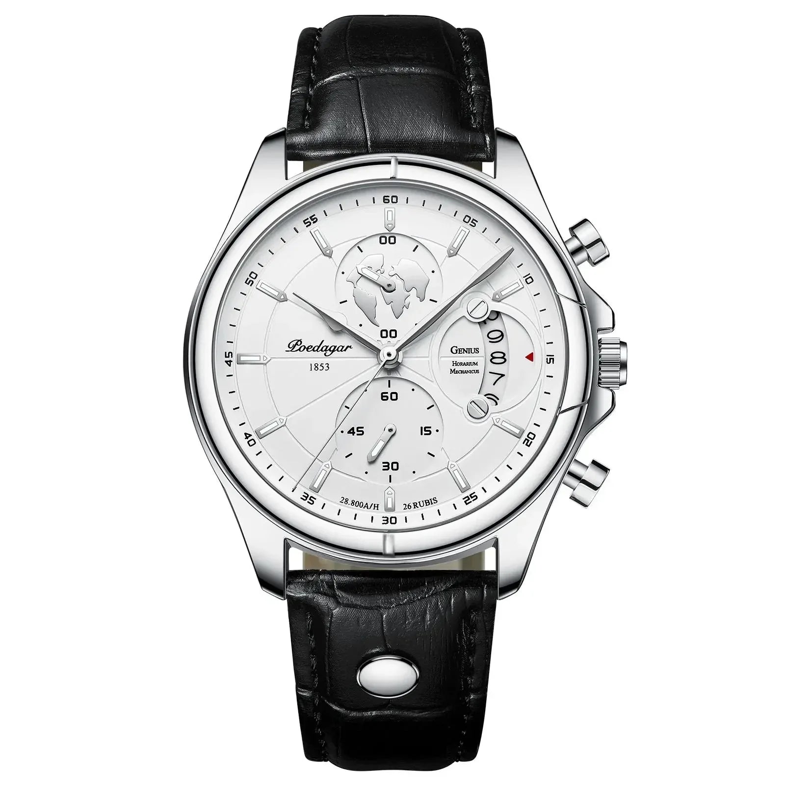 • Water-resistant to 3 bar with secure buckle closure • Premium leather band with signature rose gold accents • Multi-function dial with date display and chronograph subdials
