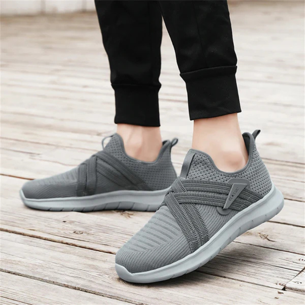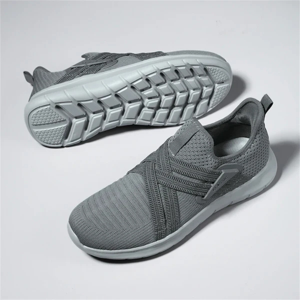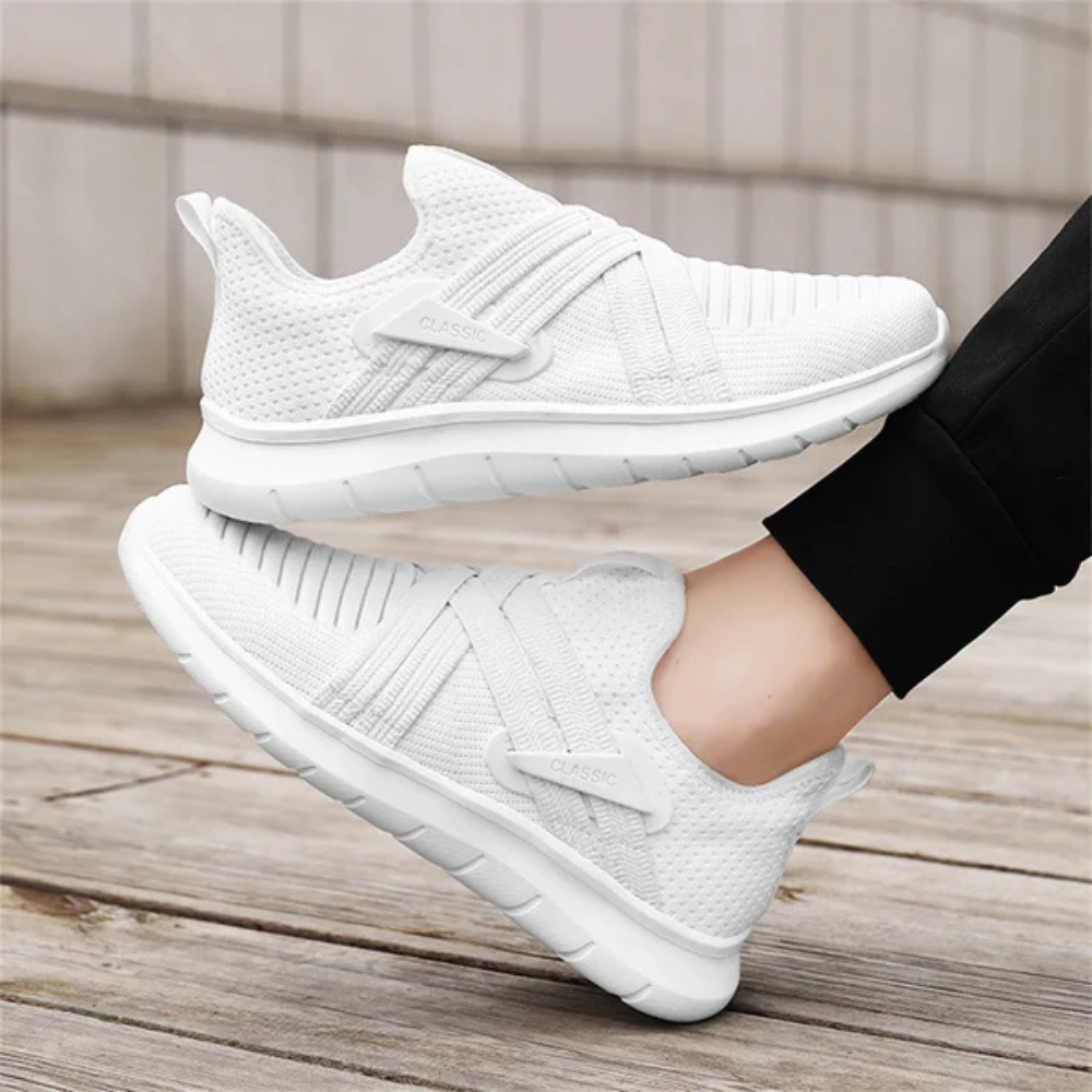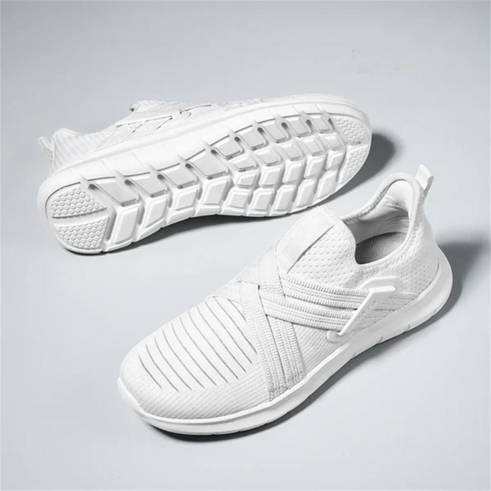 Step into your day with the effortless comfort of these slip-on athletic shoes. The innovative cross-strap design combines with breathable mesh construction to create a secure fit that adapts to your movement. A sleek silhouette meets performance engineering for versatile urban style.