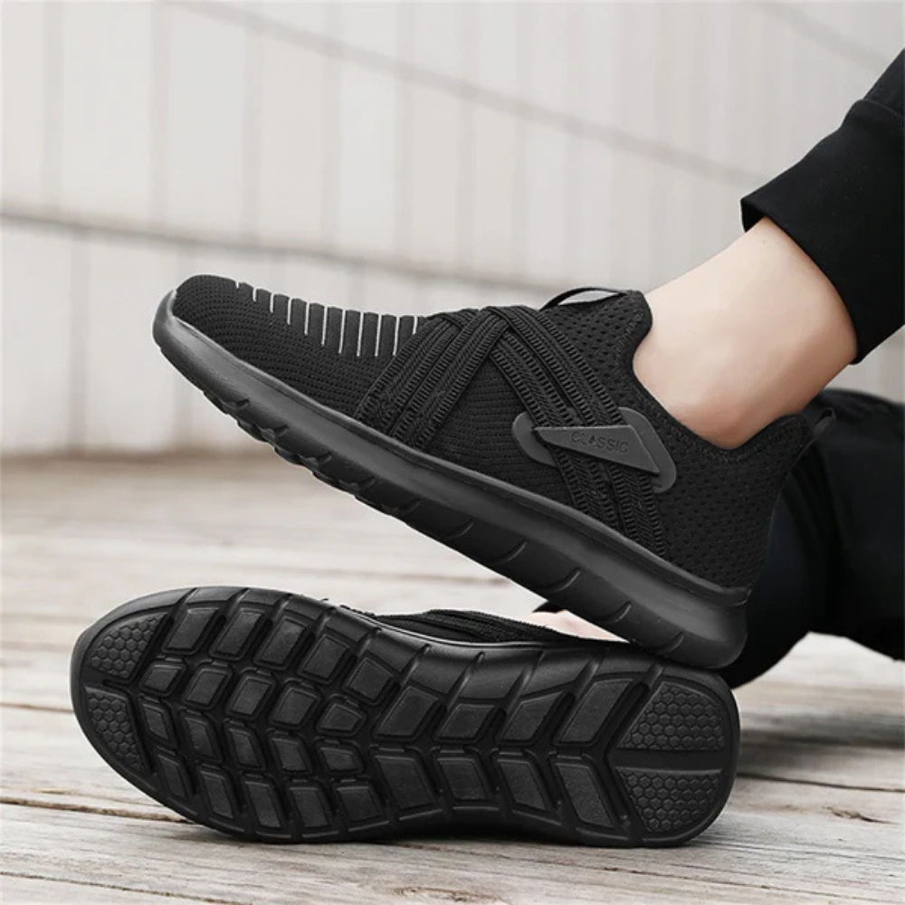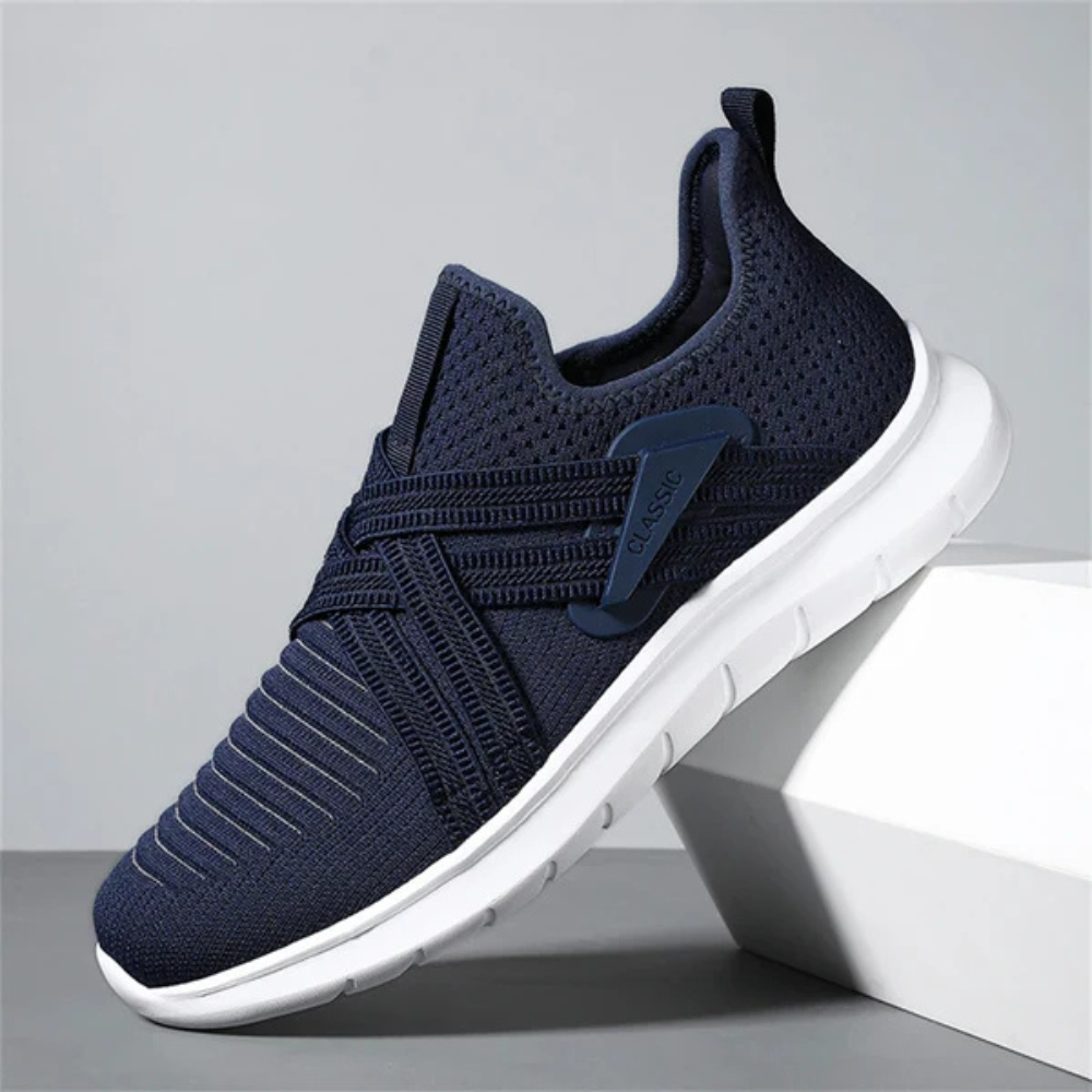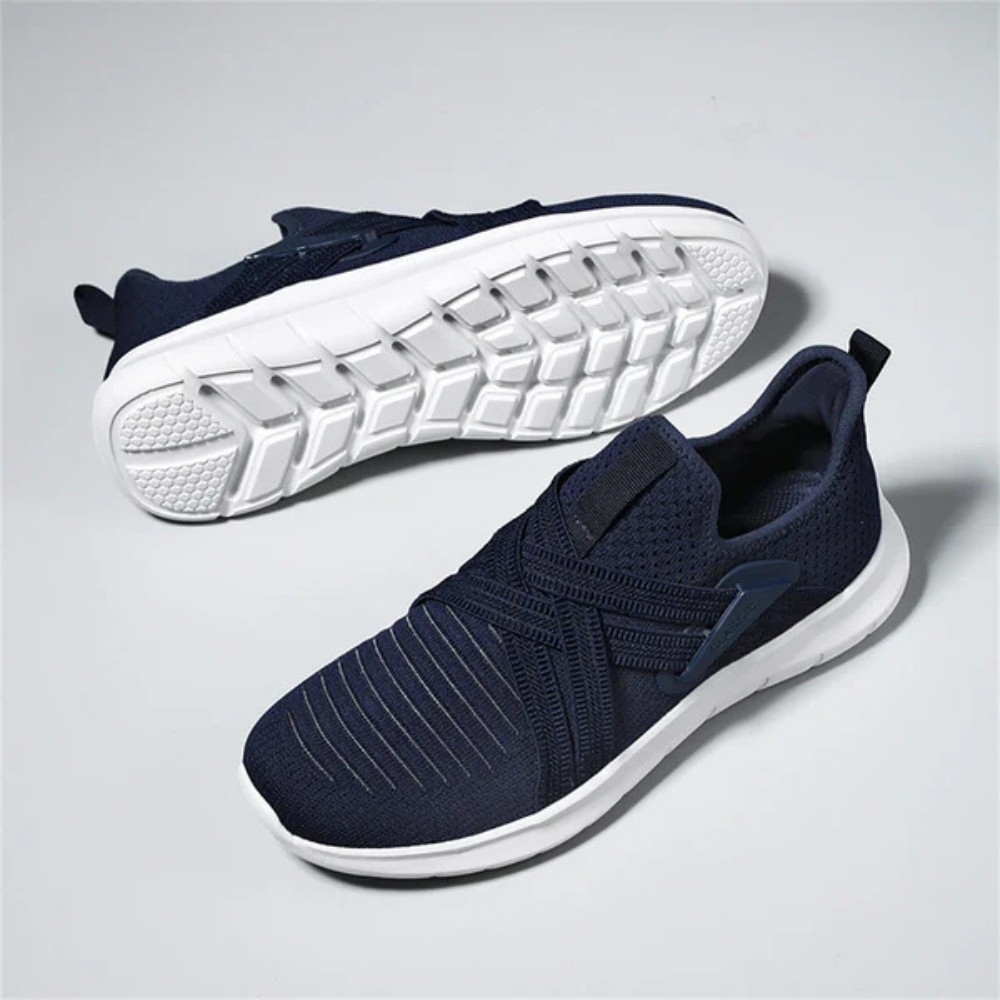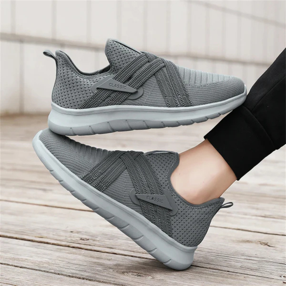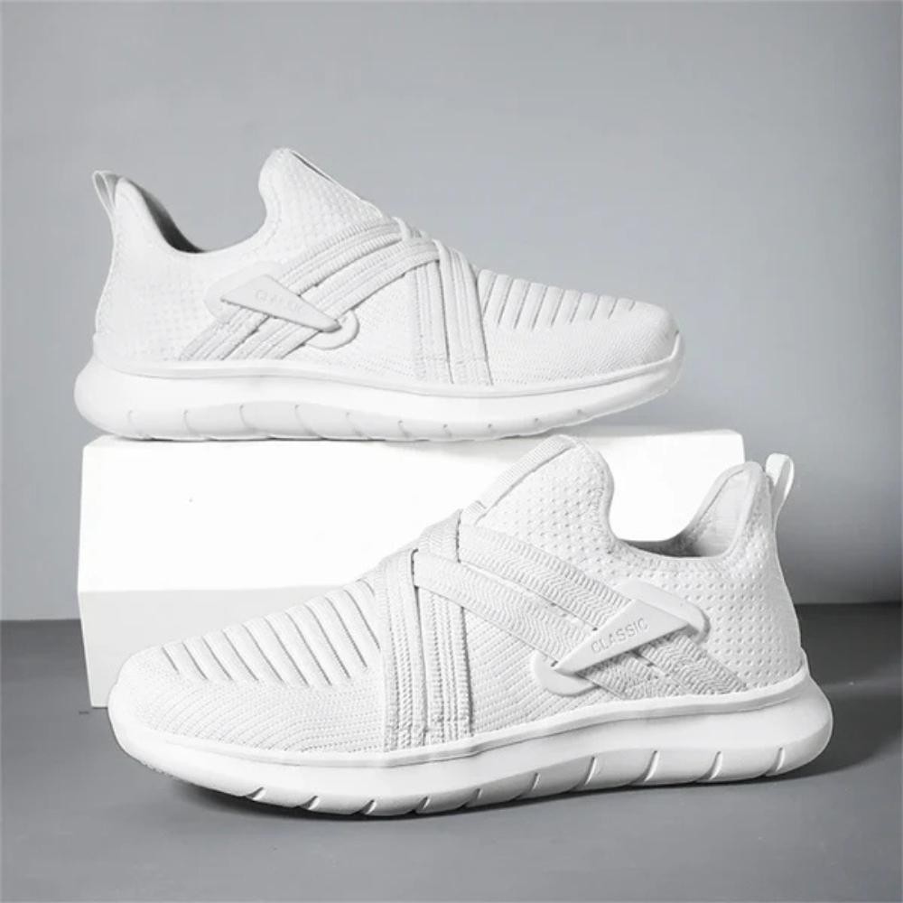 Step into your day with the effortless comfort of these slip-on athletic shoes. The innovative cross-strap design combines with breathable mesh construction to create a secure fit that adapts to your movement. A sleek silhouette meets performance engineering for versatile urban style.