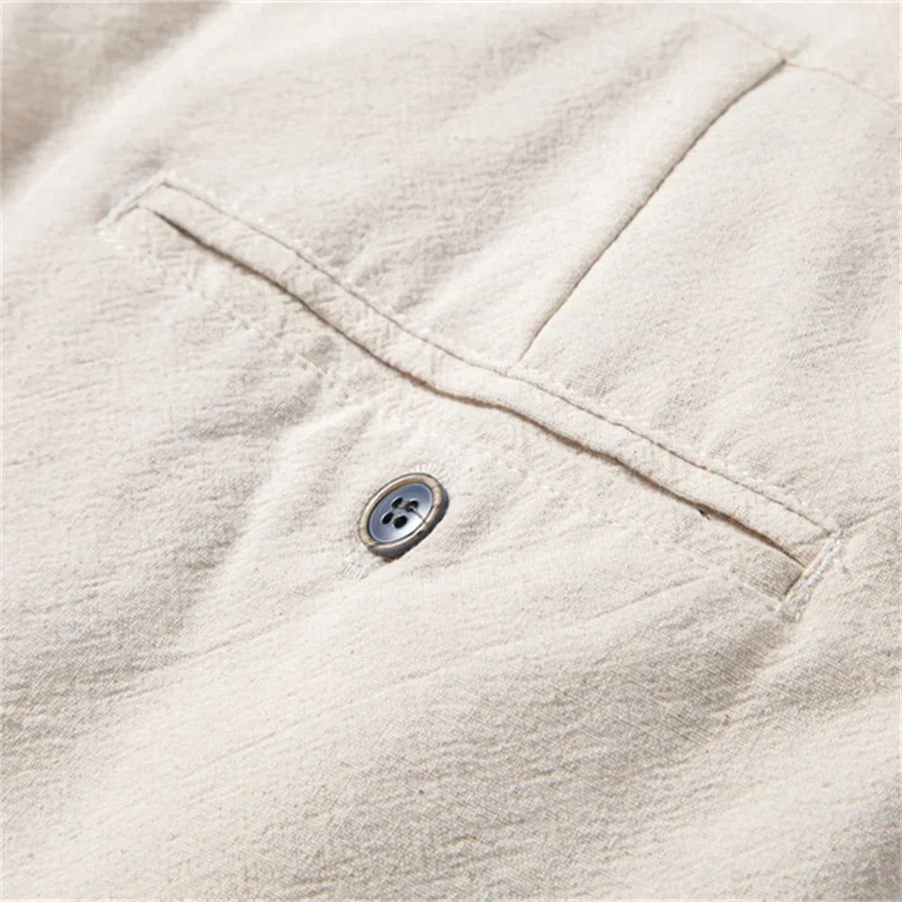 Designed for all-day versatility, these trousers feature a relaxed single-pleat design and a breathable linen-cotton blend, perfect for casual or semi-formal settings. The elastic waistband with drawstring provides a secure yet flexible fit.