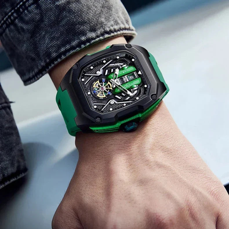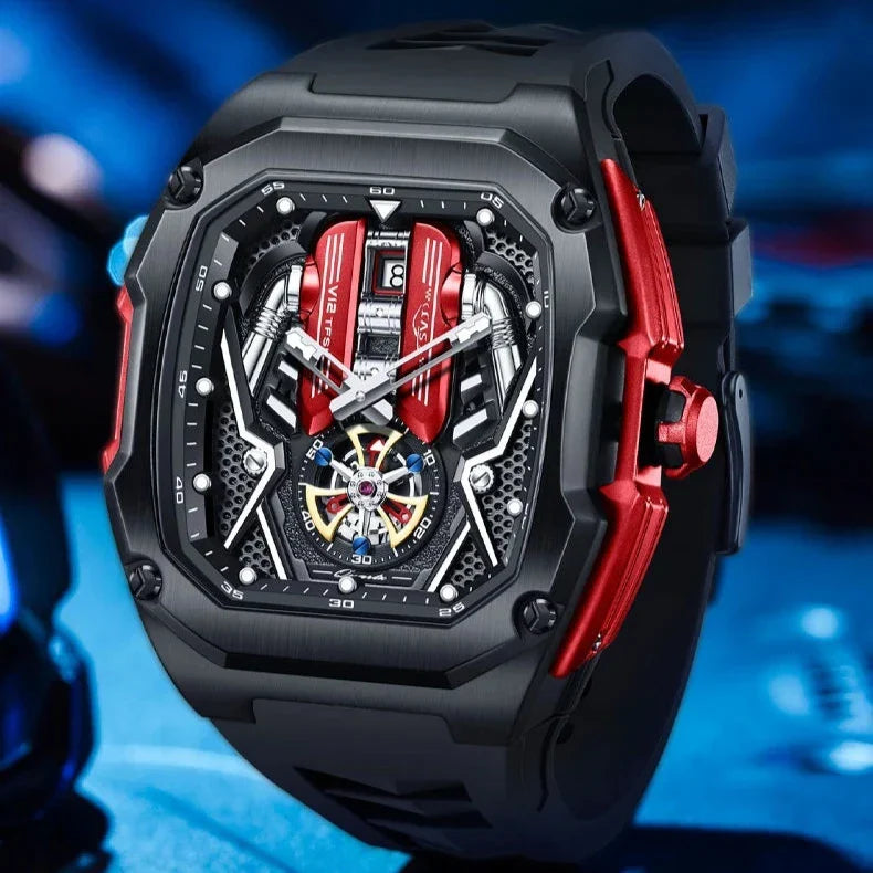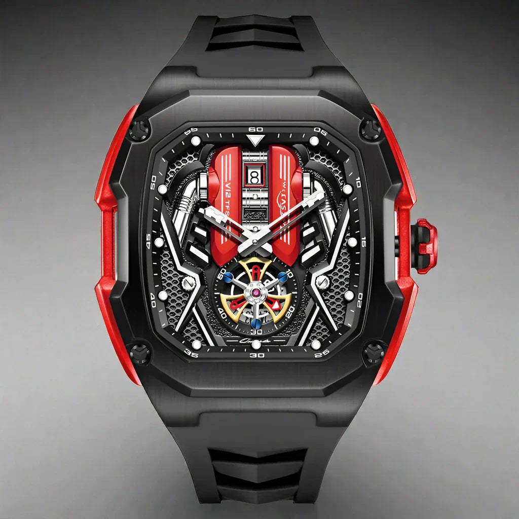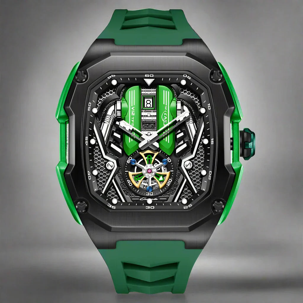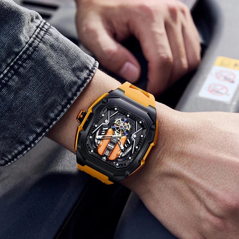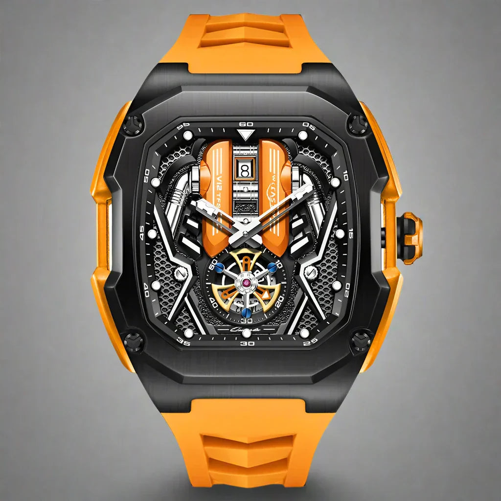 Elevate your wrist game with the Tourbillon Chronograph Watch, blending modern innovation with timeless elegance. This masterpiece features a striking stainless steel tonneau case and scratch-resistant Hardlex crystal, ensuring durability and resilience. Whether you're at a business meeting or an evening event, it exudes sophistication and functionality.