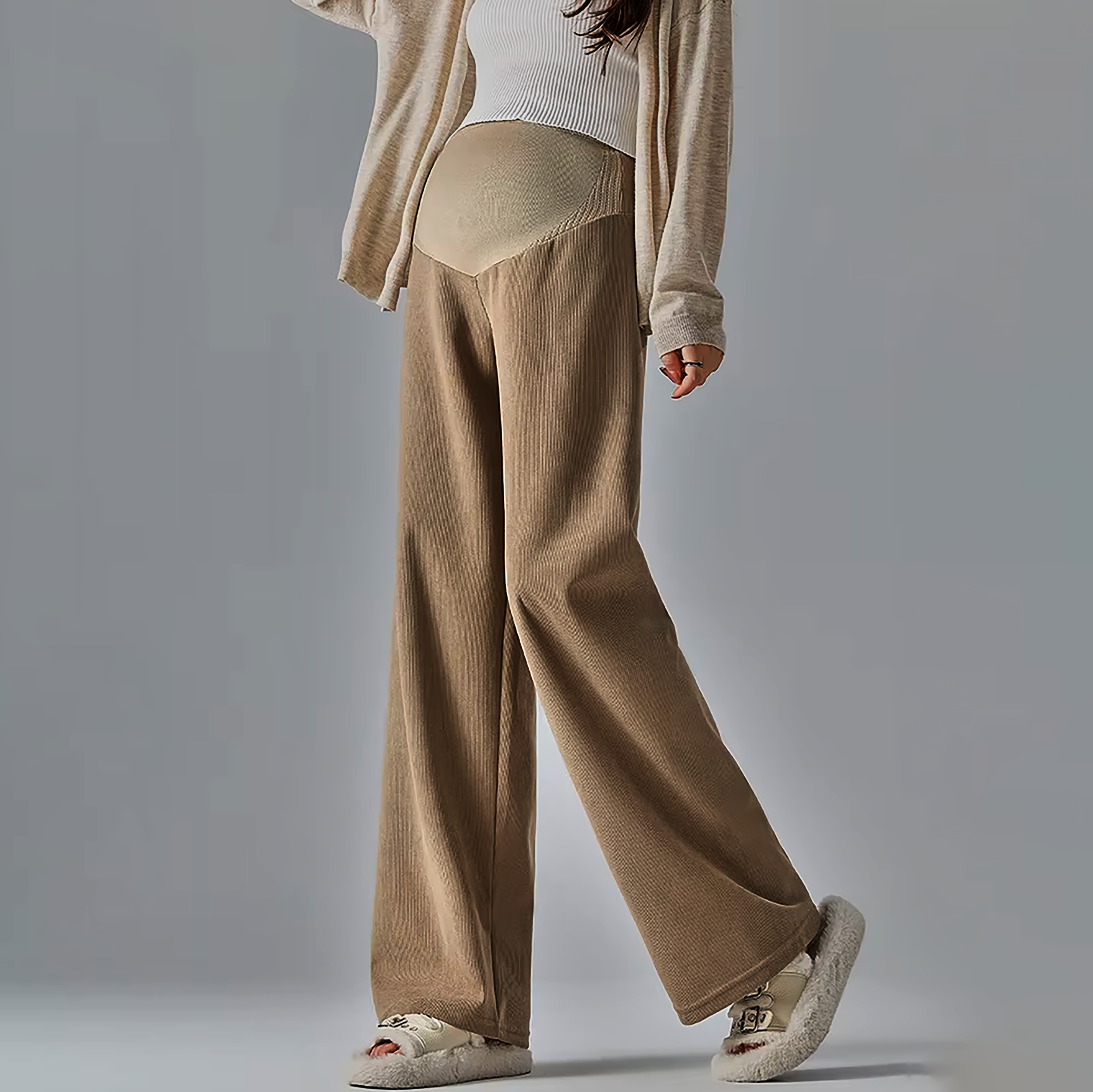• Soft cotton blend for gentle comfort • Stylish wide-leg design • Flexible waistband for growing bellies