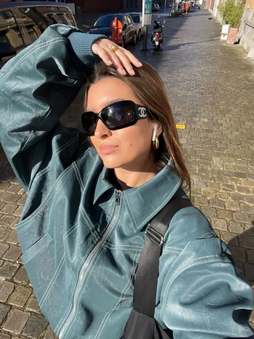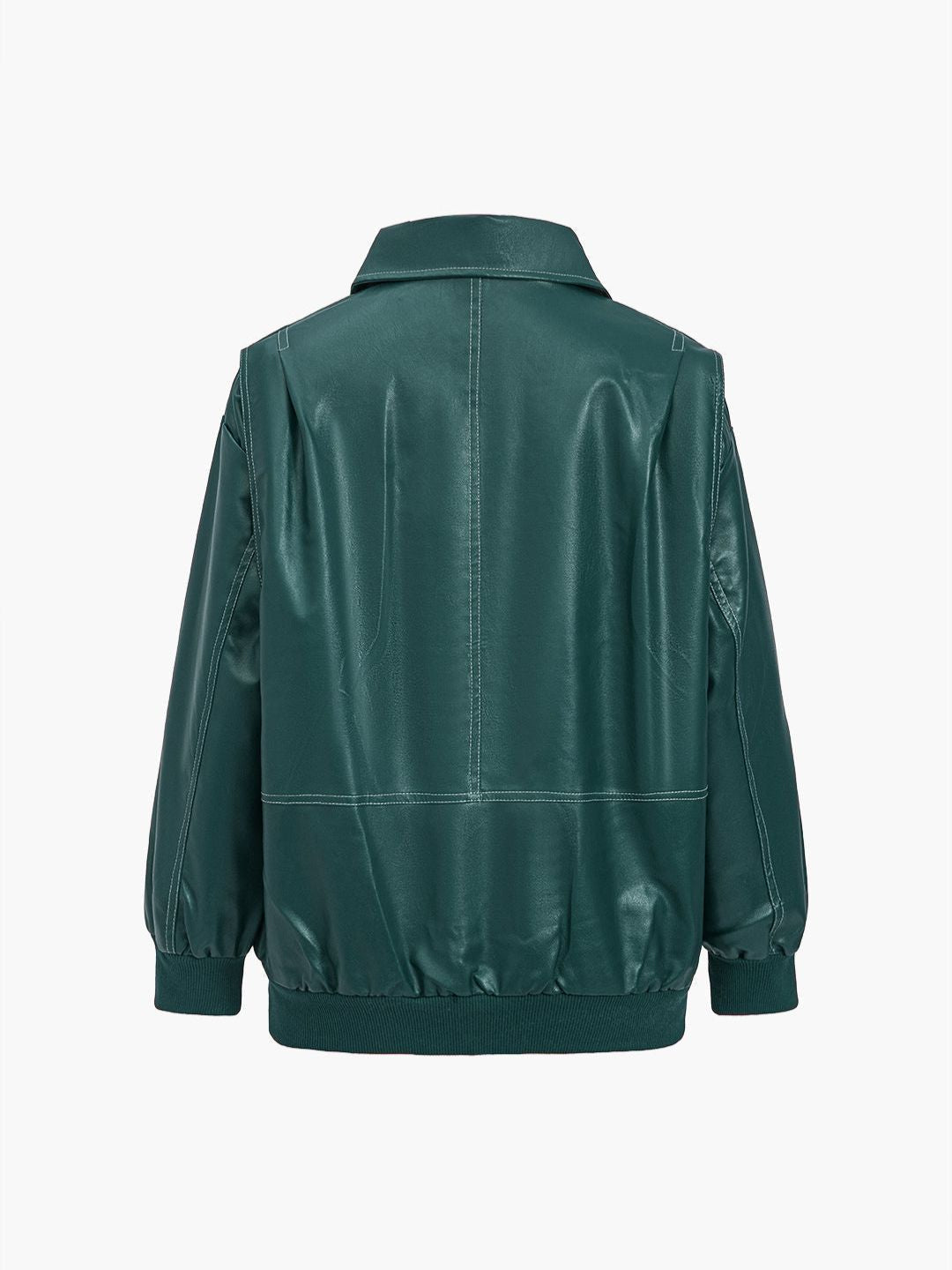 Effortlessly bold, the Lauren Leather Jacket redefines urban elegance with its relaxed silhouette and structured vegan leather finish.