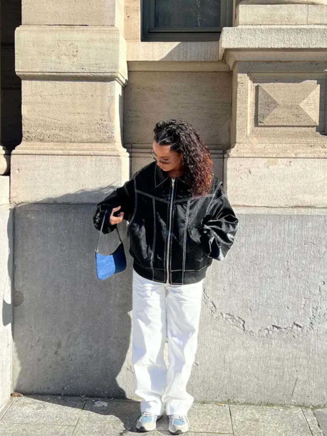 The front zipper and functional pockets ensure it’s as practical as it is stylish for versatile, all-day wear.