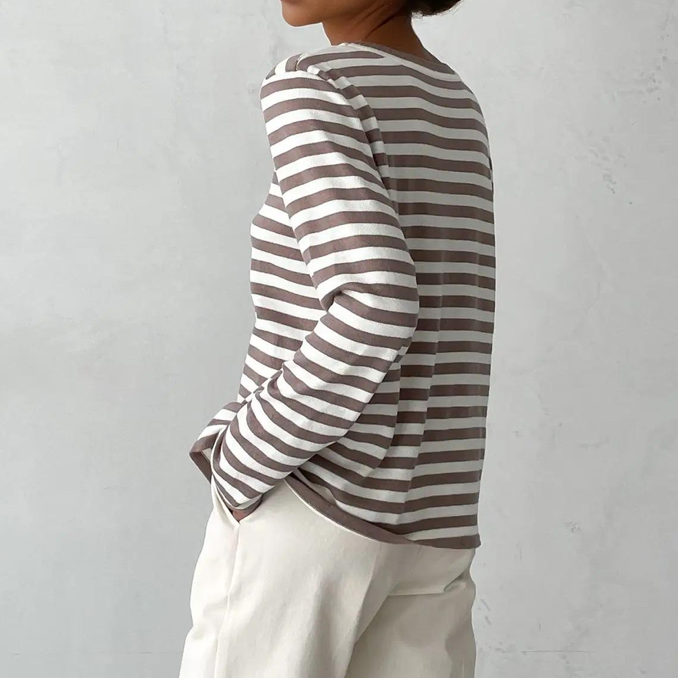 Wrap yourself in effortless elegance with our Sophie Striped Cotton Shirt, a timeless addition to your wardrobe crafted from 98% organic combed cotton and 2% spandex.